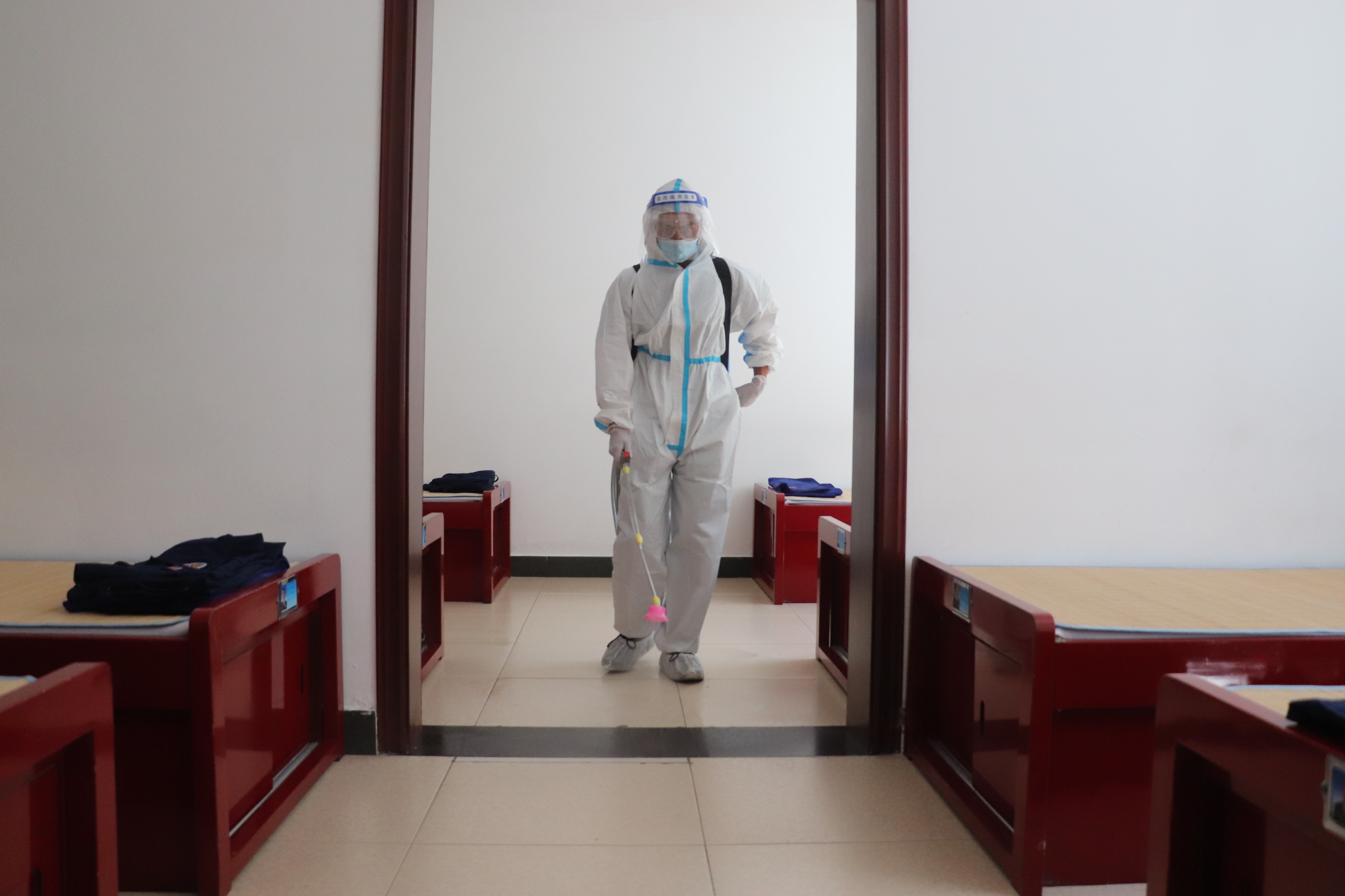大队结合现实情况,安排卫生员在早上与下午操课时对班级内部、各会议室、学习室、楼道楼梯、卫生间、浴室、食堂等场所进行全面消毒,做到全覆盖无死角,认真做好每日副食蔬菜供应登记和消毒、规范炊事区操作、每日对厨具碗筷进行消毒等措施,全方位、多角度地做好卫生防疫工作。