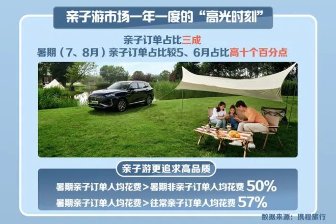 暑期迎来了亲子游市场一年一度的“高光时刻”。今年暑期亲子游订单占整体订单的三成,比5、6月份的亲子游订单占比高出整整10个百分点。此外,亲子订单的旅游人均花费相较非亲子家庭的也高出近50%,暑期亲子订单人均花费相比往常亲子人均花费也高出57%。由此可见,上半年积压的旅游“遛娃”需求在暑期得以释放,多数家庭选择在宝贵的亲子时光追求更高品质的休闲度假服务。