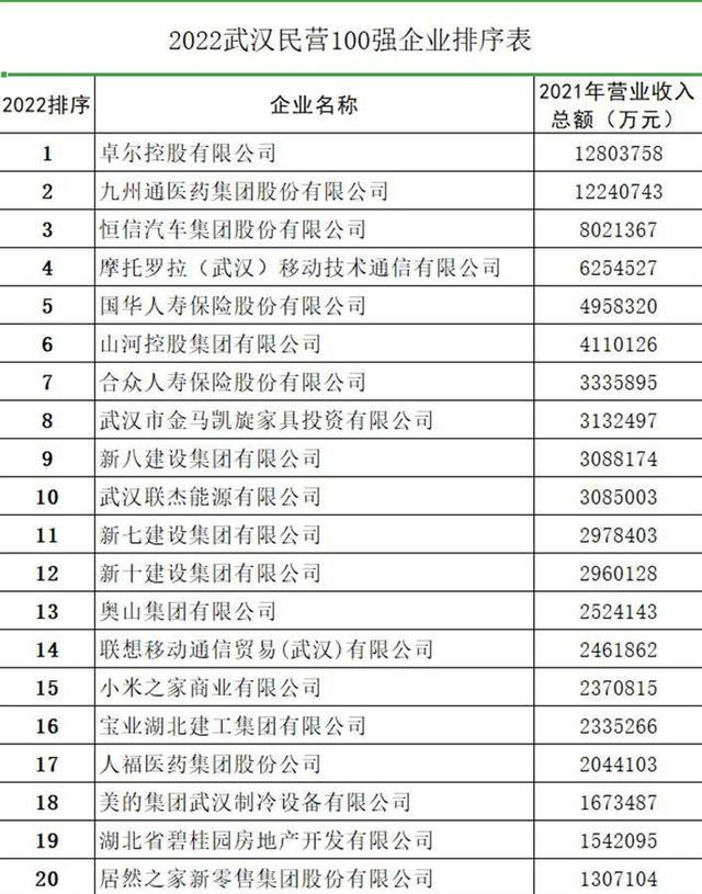 武汉百强民企前20位