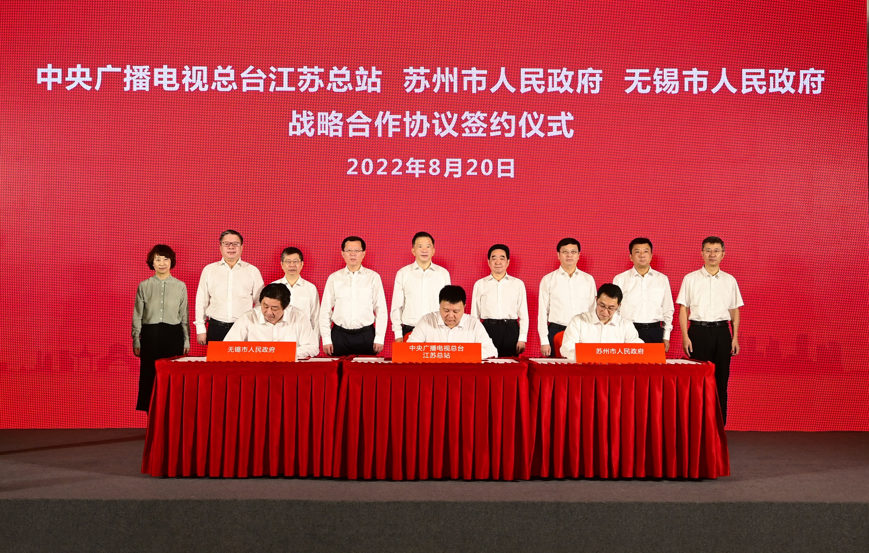 8月20日,中央广播电视总台江苏总站与苏州市人民政府、无锡市人民政府举行战略合作协议签约仪式,中央广播电视总台江苏总站苏南记者站同时揭牌。