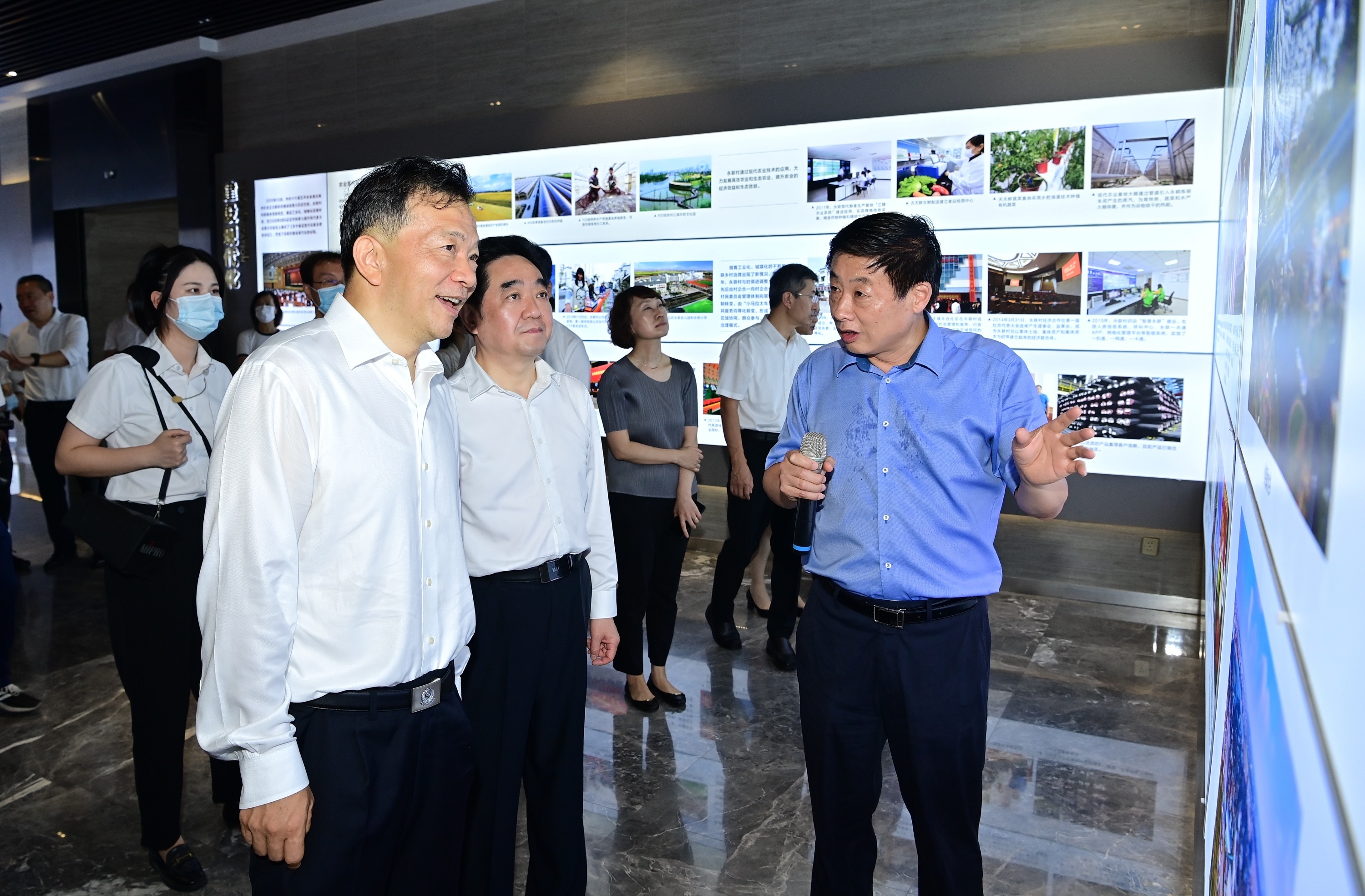 △中宣部副部长、中央广播电视总台台长兼总编辑慎海雄与江苏省委常委、宣传部部长张爱军在张家港市永联村调研
