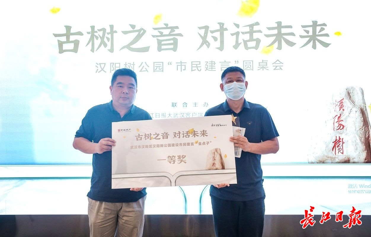 长江日报大武汉客户端8月20日讯(记者秦璟 戴容)建设方的规划理念如何落地?“时光之环”方案,市民觉得如何?8月20日上午10时,汉阳树公园“市民建言”圆桌会议举行,热心市民与专家碰撞新点子。现场,为期3个月的“汉阳树公园怎么建,万元大奖邀你来说”征集评选活动公布获奖名单,从上千条真诚建言中评出“金点子”大奖1名、“金点子”优秀奖10名。