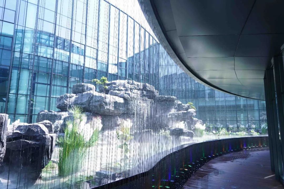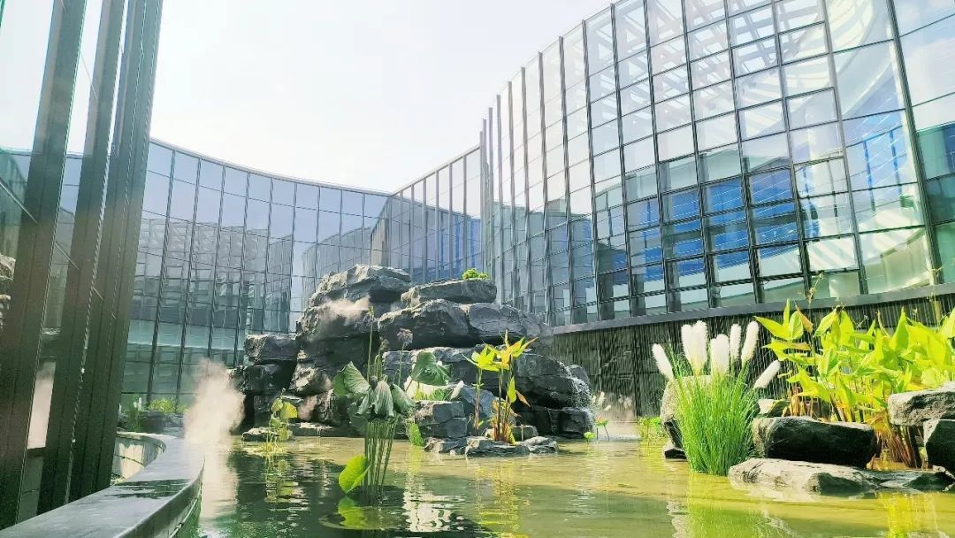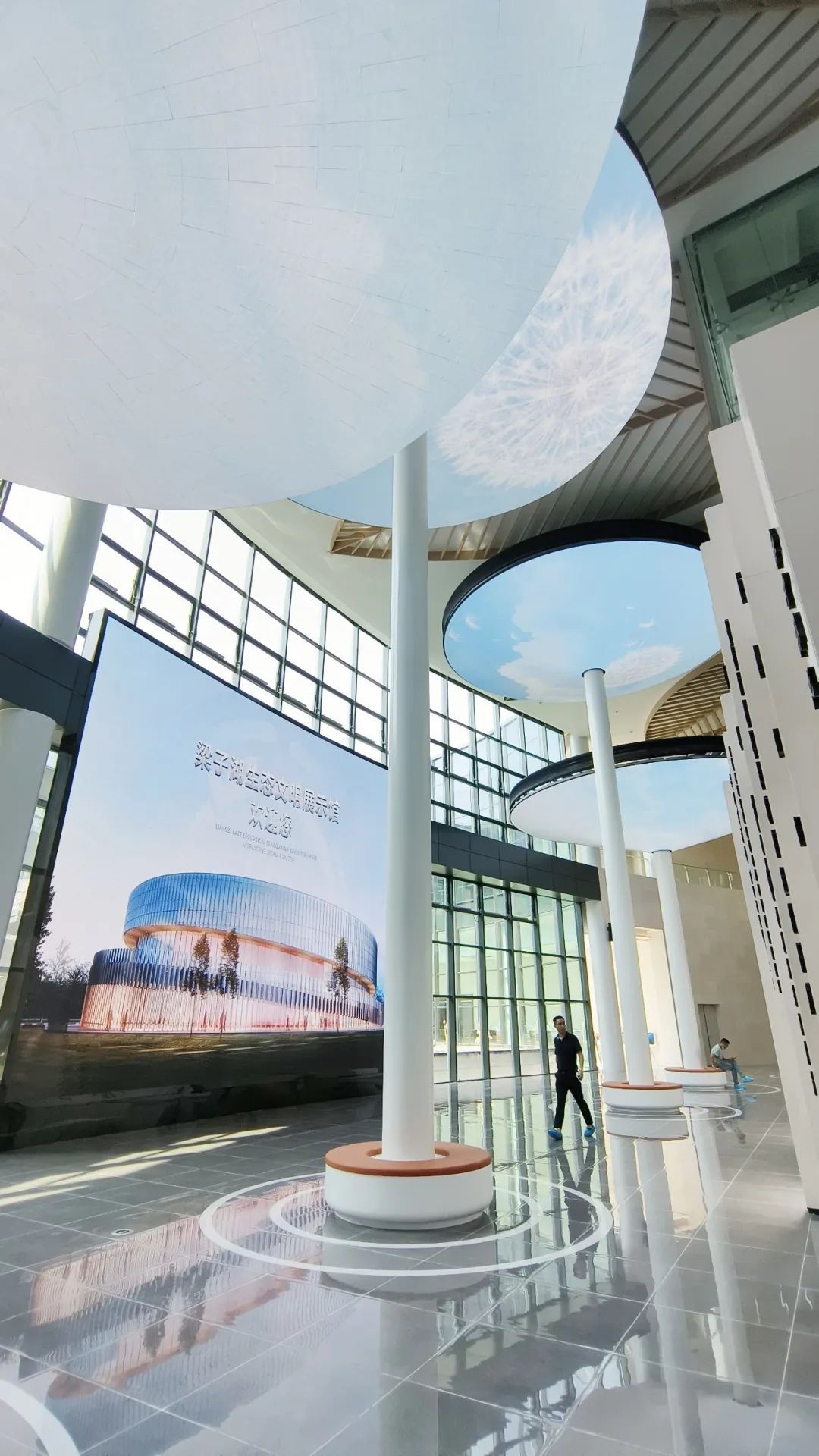 设计感极强的外墙在阳光下影影绰绰,这座建筑本身就像是一个艺术品,而徜徉其中,你也能亲身走于这幅生态文明画卷之中。
