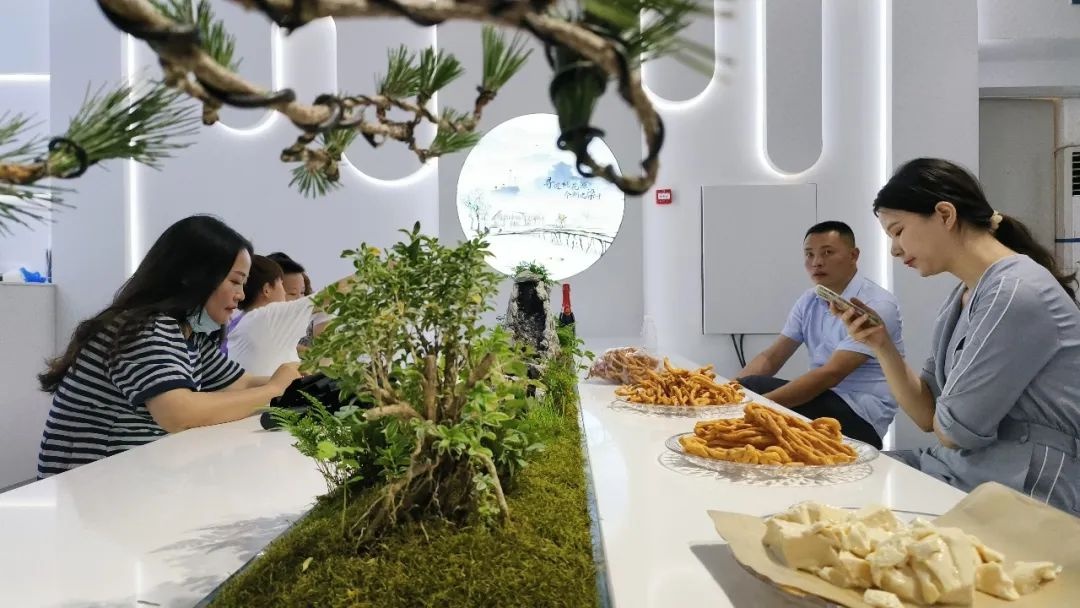 胡柚果干、蓝莓果汁、荷叶茶、中草药护手霜...... 涉及多个品类的各色产品让人目不暇接,现场还给市民准备了品尝区,整个场馆都散发着迷人的惬意感。