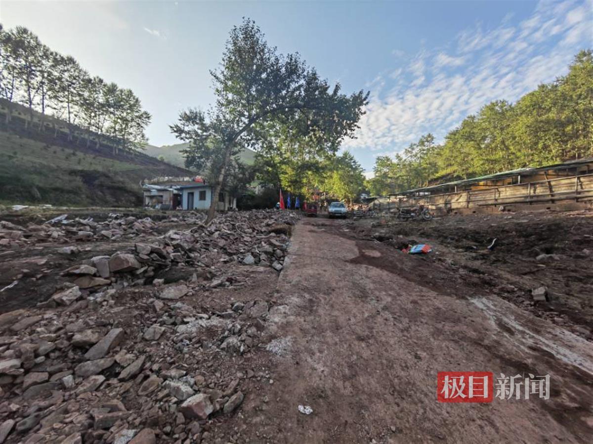村民杨先生向记者介绍,以前的河沟又窄又浅,有的地方一步就能轻易跨过。因为山洪冲刷,现在的河沟比之前宽了数倍,深度至少也增加了七八倍,河沟上的一座小桥也被冲毁。山洪暴发时,水泥路上的水也有半米深,因为牛圈地势高,他和妻子是在牛圈里躲避。