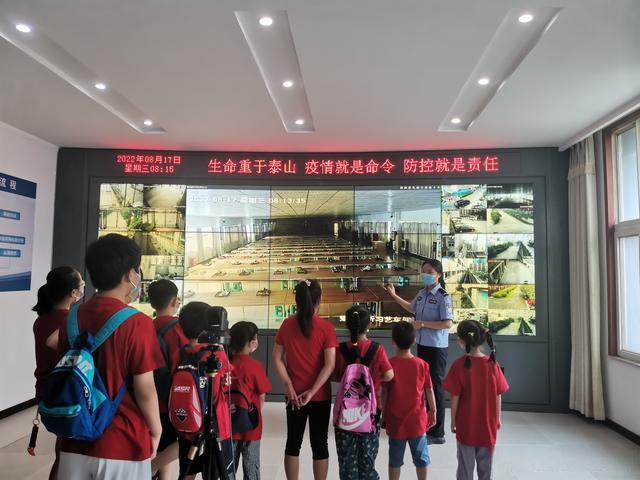 20余名“警娃”在讲解员的引导下有序地走进警营,对场所安防设施、监控中心进行参观,在监控大屏下近距离、多维度、全方位的体验感受父母平时的工作环境和工作内容。