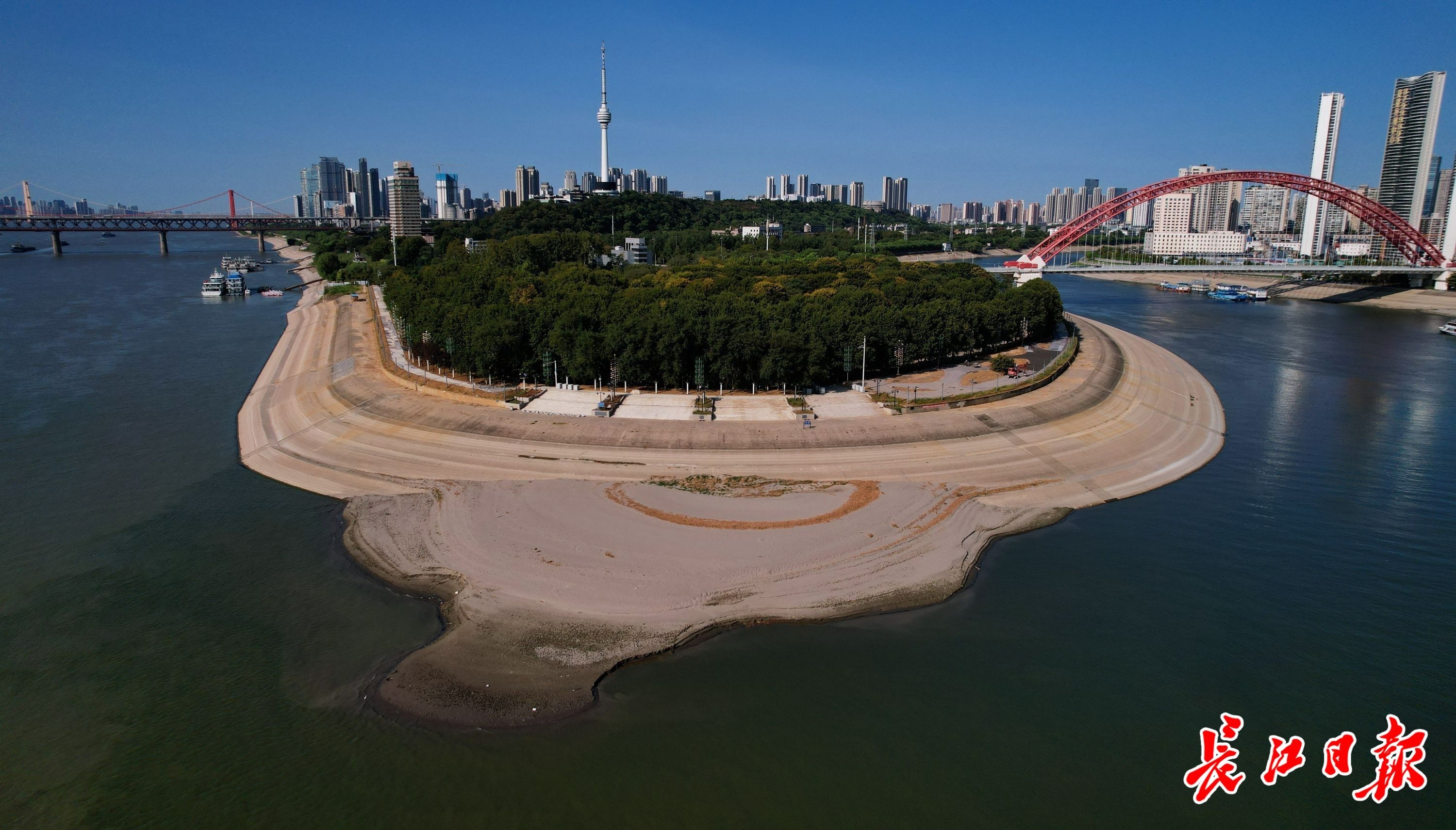8月21日,武汉南岸嘴公园露出大片沙滩。 记者何晓刚 摄