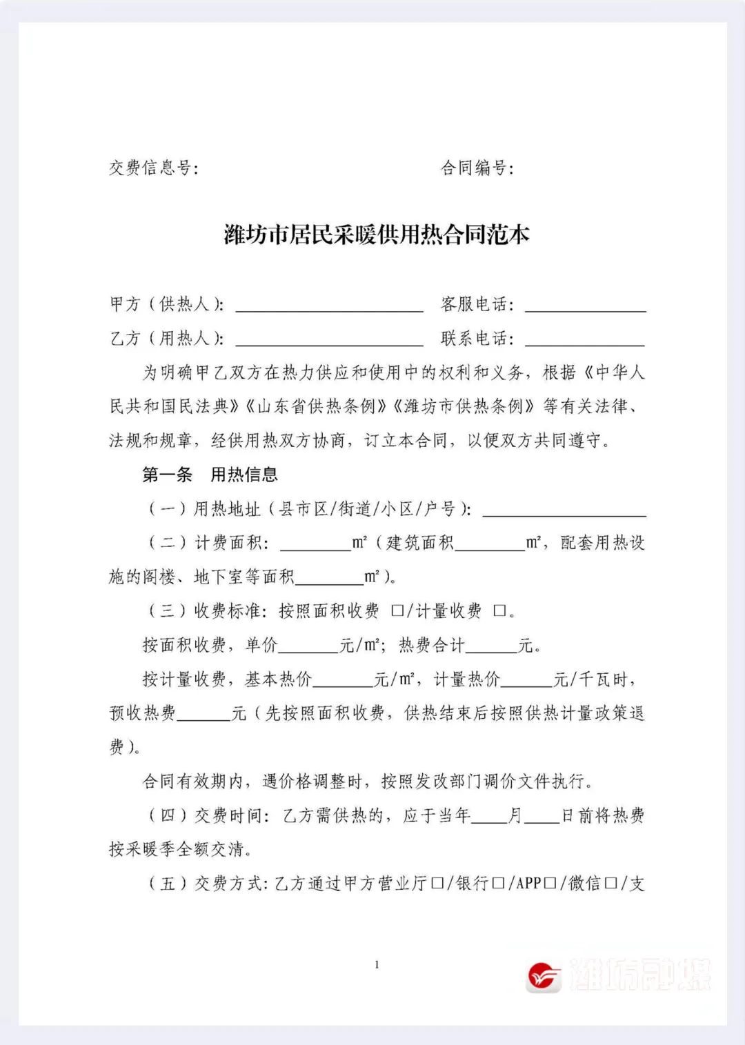 最新消息!为维护供用热双方合法权益规范供用热行为根据《潍坊市供热条例》潍坊市城市管理局和潍坊市市场监督管理局制定了《潍坊市居民采暖供用热合同范本》自9月1日起正式施行