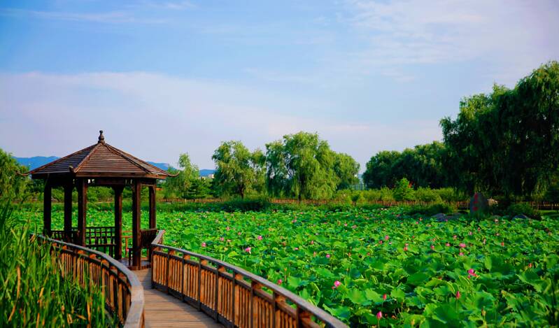 沿着蜿蜒的栈道穿梭在池中,荷花之百态尽收眼底,她们或遗世独立,或三两簇拥,或掩在荷叶身下、藏于芦苇丛中,或高高生长,占尽一方天地。即使非爱花之人,看到这里叶如绿波、花似红云,也会忍不住将她们一一拍下,独霸一屏朋友圈。