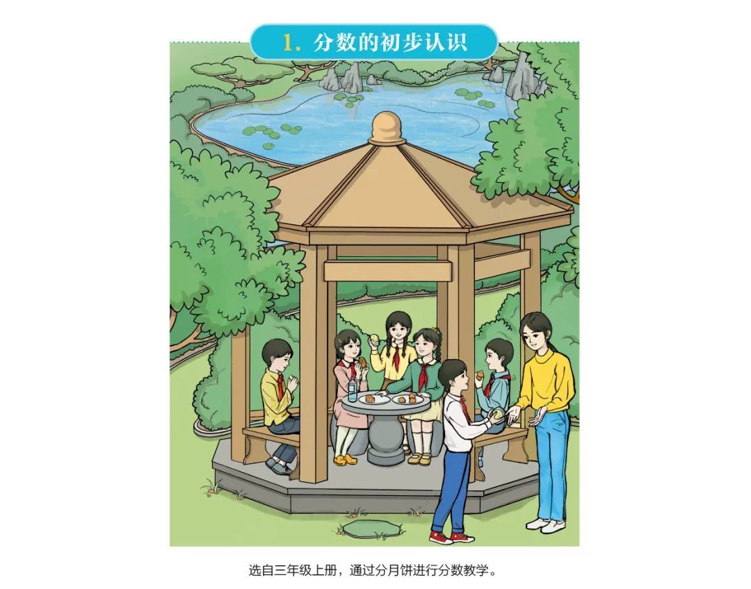 据央视新闻,新绘制的小学数学教材插图在整体上力求体现出“中国风”“时代感”“精气神”和“数学味”的风格特点,展现新时代中国少年儿童阳光、向上、愉悦的精神面貌,坚持大众主流审美取向,遵循儿童认知与身心发展规律,清新雅正,简洁大方,图文相融。