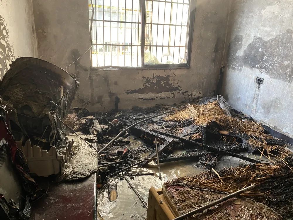 据了解,起火原因系孩子玩火引起。事发当天,孩子母亲带着家里的小宝临时离开,独自留着大宝在家。
