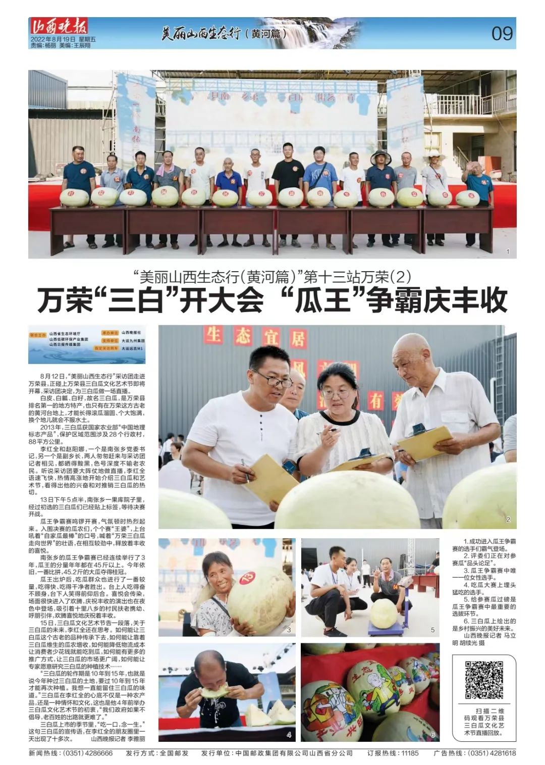 8月12日,“美丽山西生态行”采访团走进万荣县,正碰上万荣县三白瓜文化艺术节即将开幕,采访团决定,为三白瓜做一场直播。