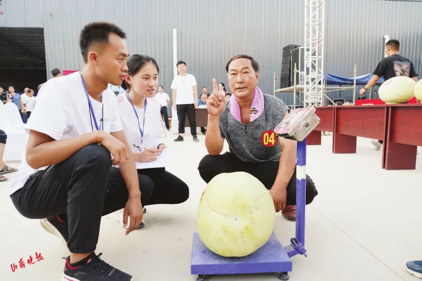 给参赛瓜过磅是瓜王争霸赛中最重要的选拔环节。