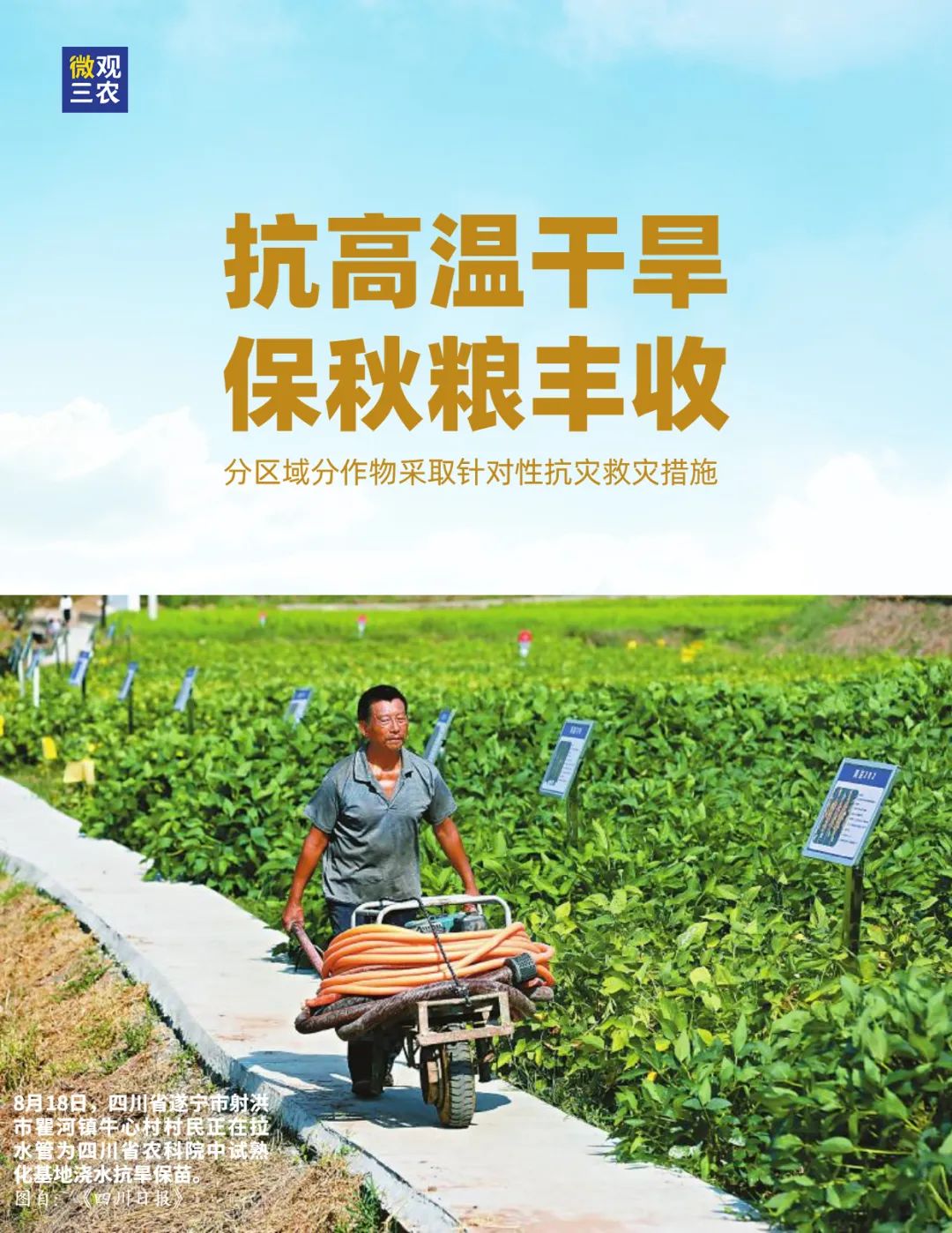 7月以来,四川省遭遇大范围长时间极端高温干旱天气,部分地方农作物受灾严重。目前,全省夏粮已获丰收,但全年粮食的大头还在秋粮。抗旱保粮,烈日下的田间地头,一支支由党员干部、农业技术人员、群众和志愿者组成的队伍在高温下持续战斗,千方百计把水和技术送到田里。