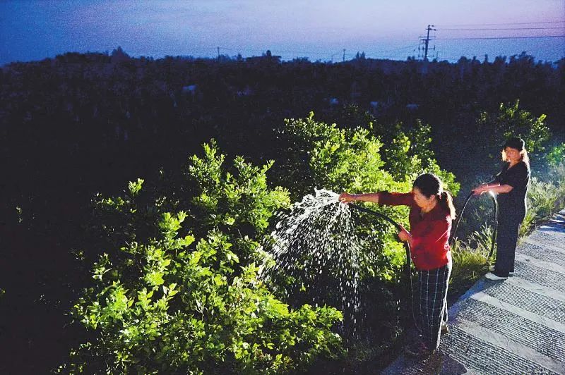 8月17日6时,四川内江资中县重龙镇尖峰村的果农抽水灌溉柑橘果园。