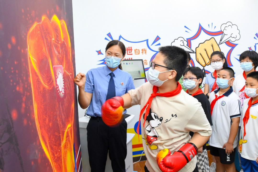夏令营中,张贵庄街道永平巷社区的孩子们参观了东丽人民检察院未成年人办案区、法治长廊,体验了心理沙盘游戏、击打宣泄系统等心理辅导设备,感受了模拟法庭场景,学习了暑期安全自护技巧。丰富多彩的活动,让学生们收获满满。