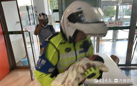 20日下午,市南辖区上演了紧张的一幕,有一名出生仅三天的婴儿突发高烧,交警市南大队铁骑队员仅用2分钟就将婴儿护送到医院。