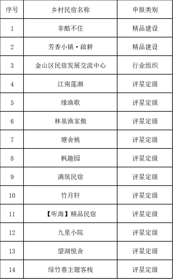 为推动《金山区关于促进乡村民宿高质量发展的实施办法》(金文旅〔2022〕15号)有效落地实施,加快推进乡村民宿高质量发展,提升旅游接待与服务水平,金山区文化和旅游局开展了2022年度乡村民宿扶持政策评审工作,现将2022年度金山区乡村民宿拟扶持名单进行公示。