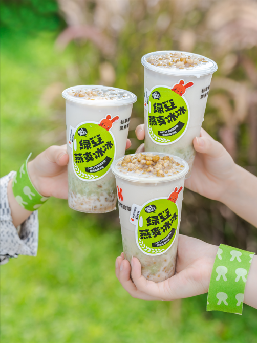 书亦烧仙草选用优质绿豆研磨而成的绿豆乳搭配OATLY定制燕麦奶,推出全新的植物基新茶饮产品——绿豆燕麦系列产品。