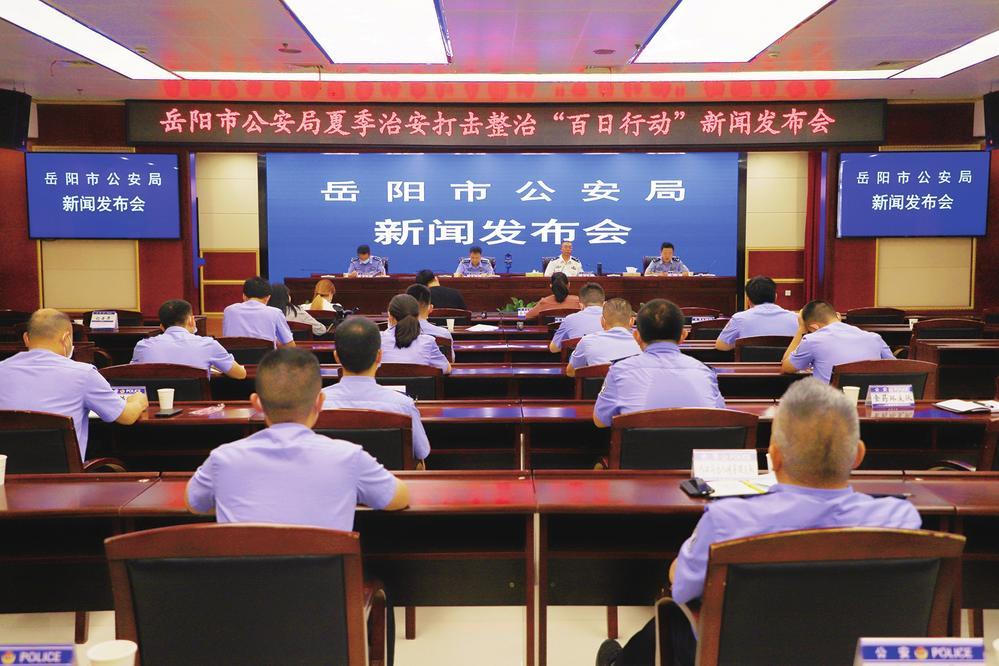 昨天,岳阳市公安局召开夏季治安打击整治“百日行动”新闻发布会。行动以来,破获各类案件1117起,刑事案件发案量同比下降8.3%,电诈、盗窃等刑事案件发案量同比分别下降26.7%、35.7%,全市社会治安平稳有序。