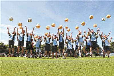 湖南省永州市新田县龙泉四小学生在课后练习踢足球。刘贵雄 摄(资料图片)