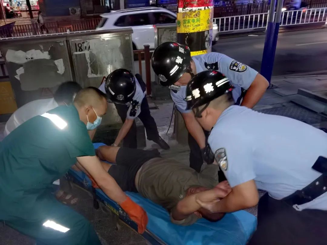 一男子午夜醉卧马路边,民警接警后迅速赶赴现场并协助医护人员将其送往医院
