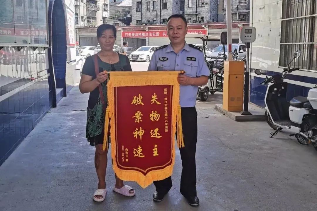 帮群众找回摩托车,群众送锦旗感谢,警民一家亲