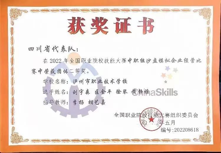 2022年全国职业院校技能大赛中职组沙盘模拟企业经营赛项于8月22日在山东日照市科技中等专业学校开赛,全国63个代表队同台竞技。经过激烈的角逐,泸州市职业技术学校会计事务专业李扬、胡艺嘉老师指导的学生徐琴(20级本科2班)、黄静雅(20级本科18班)、刘宇森(20级会计大专班)、匡金平(19级12班)以扎实的专业功底和良好的职业素养,勇夺二等奖。