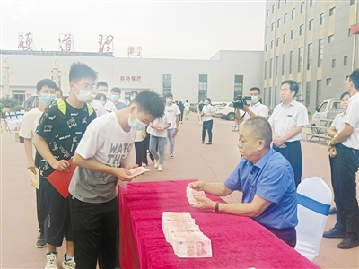 王萌是一名农村孩子,他的哥哥去年刚考上重点大学,妹妹也在县城读高中。每年兄妹三人的学费,着实让这个普通家庭感到吃力。令人欣慰的是,经过家访、审核、评定等环节,共有153名像王萌一样的贫困大学新生受到河南矿山资助。“努力完成学业,将来走上社会,去帮助更多的人。” 领到助学金,王萌激动地说。