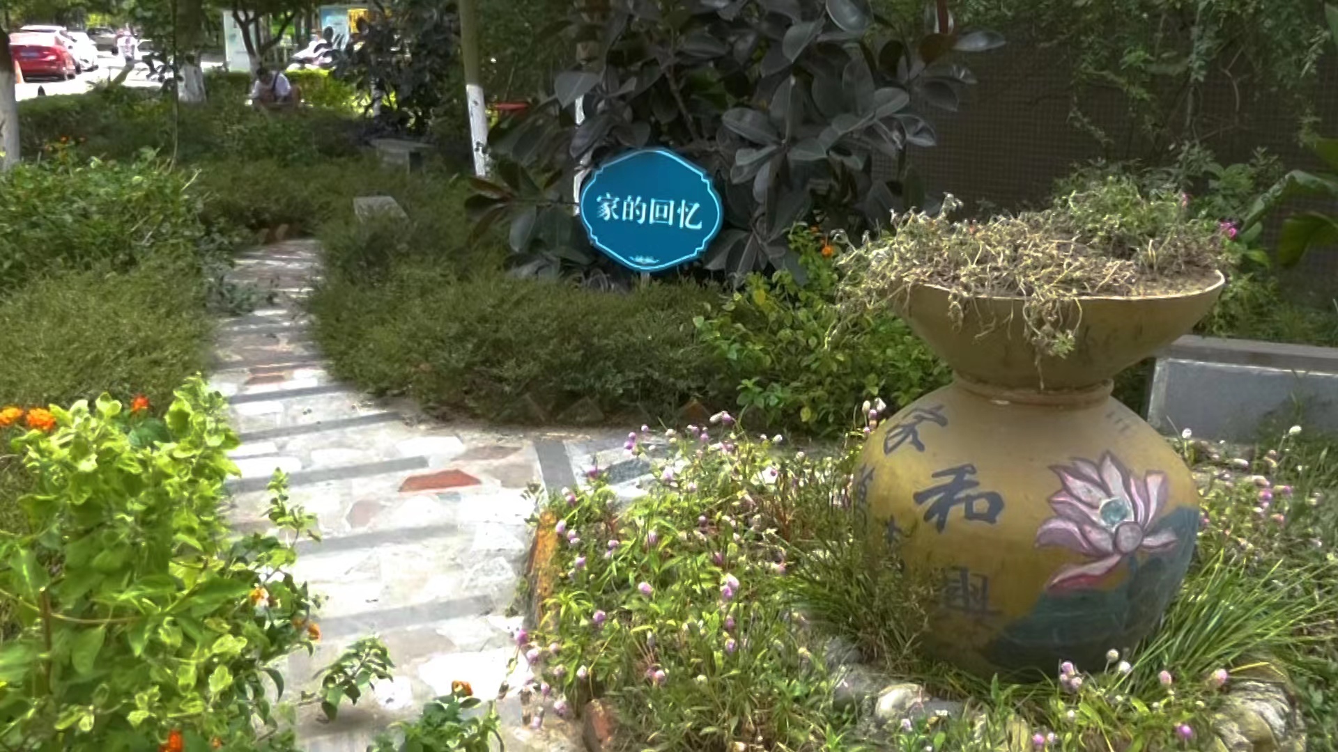 在和韵社区,居民因为拆迁安置而相聚于此,最初刚来这里时,大家都不太适应社区生活,纷纷将乡村旧物搬入屋前宅后,破落闲置,严重影响着社区容貌。要如何让这些乡“愁”不愁呢?在社区书记周相君的带领下,大家把令人发愁的废弃狗槽、酒坛、石臼等利用起来,在里面种起了花草,创造出狗槽植绿、酒坛生花、竹筒流水等多处创意小景,景景相连,“盆景”变“风景”,留住了这些眷恋故土的美丽乡愁。