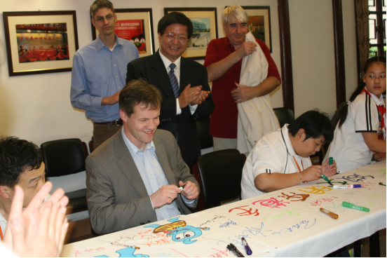 图为2008年10月17日,时任汉堡中区区长施乐博一行参观虹口区曲阳社区文化中心(上海外办供图)