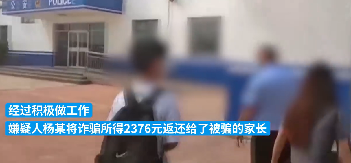 经过积极做工作,嫌疑人杨某将诈骗所得2376元返还给了被骗的家长。警方对杨某作出行政拘留10日,罚款500元的处罚。