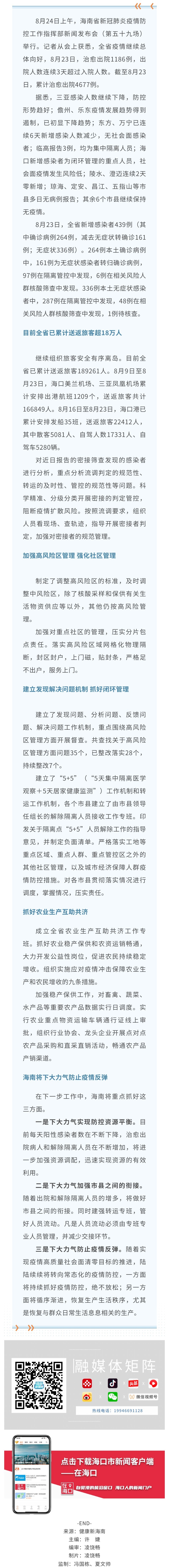 海南省疫情继续总体向好 治愈出院人数连续3天超过入院人数