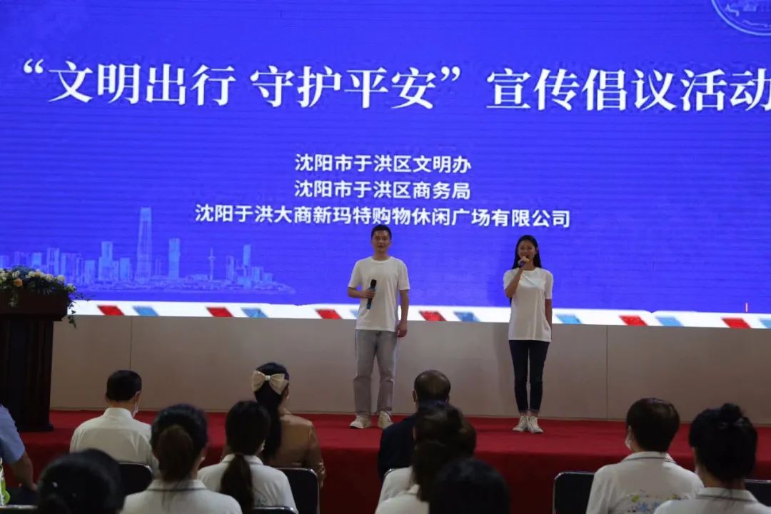 于洪区文明志愿者——沈阳市于洪区东北育才丁香湖小学王祎婷、辽宁省实验学校赤山校区王涛走上舞台,唱响于洪区原创的文明主题歌《心有余香》。同时,大家现场签署“文明出行 守护平安”宣传倡议书。