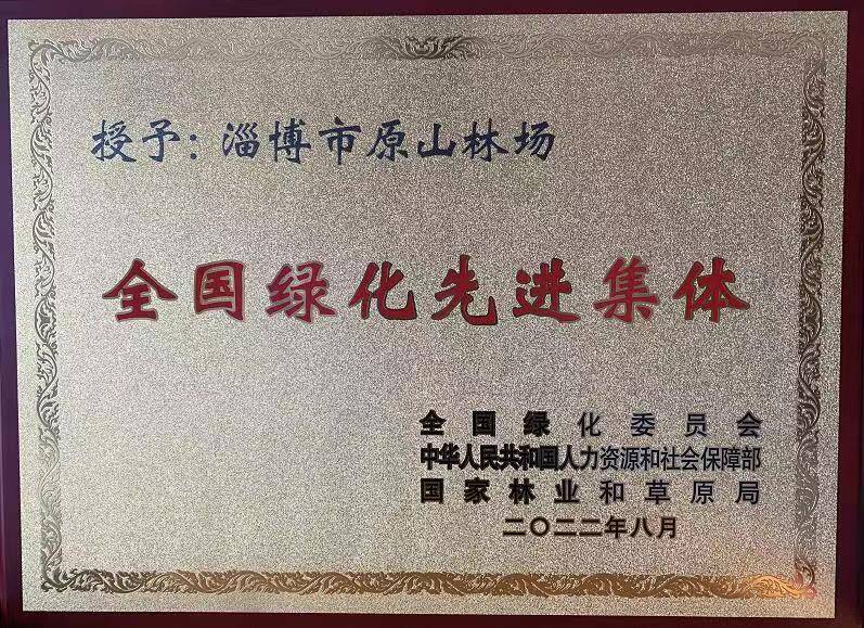 “全国绿化先进集体”荣誉是我国在义务植树、绿化造林等国土绿化方面的最高荣誉。原山林场建场之初,森林覆盖率不足2%,经过65年三代原山人艰苦奋斗、无私奉献,植树造林,昔日的荒山秃岭变成了绿水青山,森林覆盖率达到94.4%,活立木蓄积量达到22.1万立方米,书写了我国北方石灰岩山地荒山变林海的绿色传奇,成为鲁中淄博不可或缺的一道绿色生态屏障。林区内,大片的优质侧柏林与石灰岩山地共生,被林业专家称赞为“中国北方石灰岩山地侧柏模式林分”。