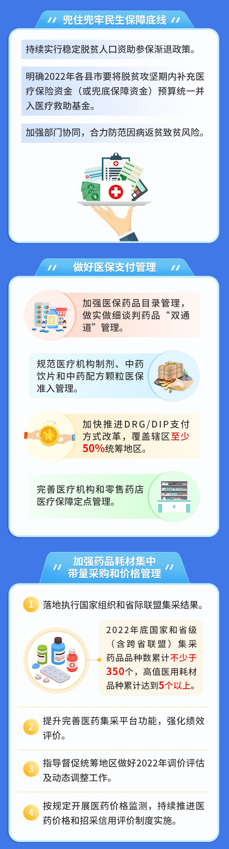 近日,湖北省医疗保障局、省财政厅和国家税务总局湖北省税务局联合印发了《关于做好2022年城乡居民基本医疗保障工作的通知》,明确了湖北省城乡居民基本医疗保险人均财政补助标准达到每人每年不低于610元,个人缴费标准达到每人每年350元,进一步统筹发挥基本医保、大病保险和医疗救助三重制度综合保障效能。