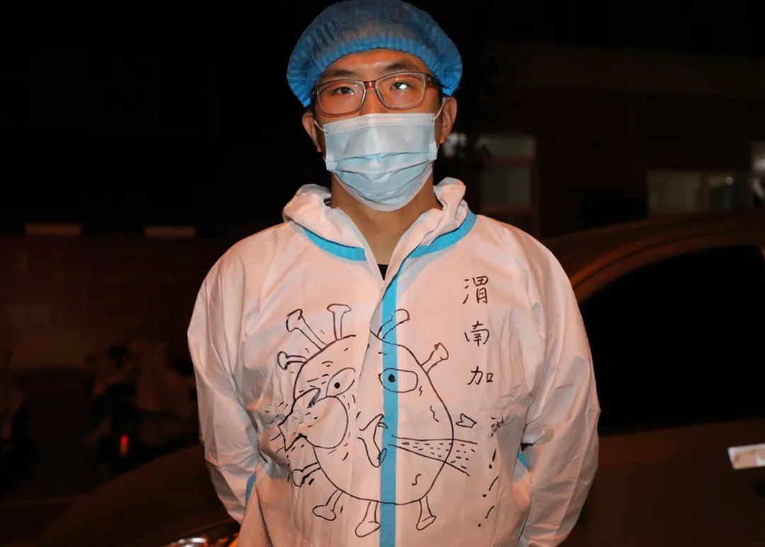 合阳县支援高新区医护人员的防护服上画上了可爱的涂鸦