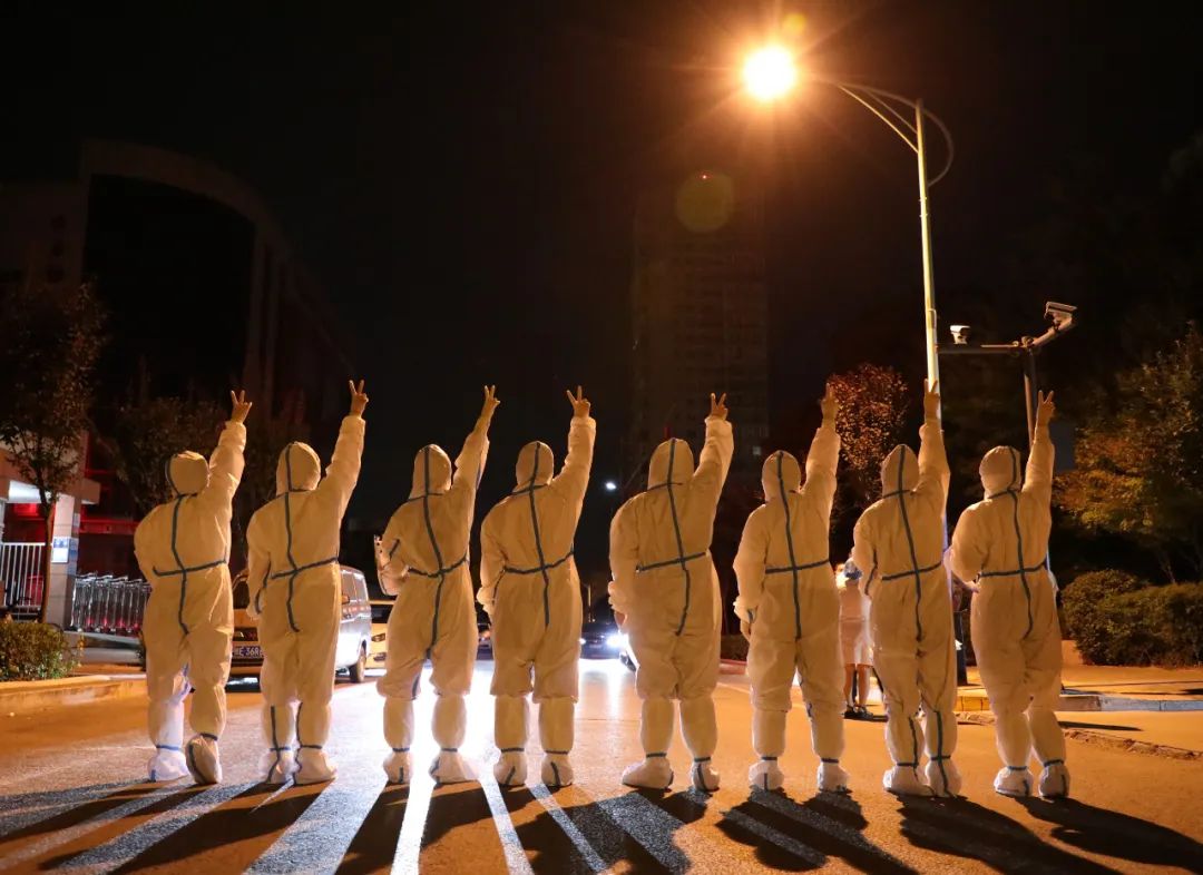 下午四点五十分,经过全区医护人员、志愿者、党员干部们14个小时的奋战,圆满完成今天的区域核酸检测任务。