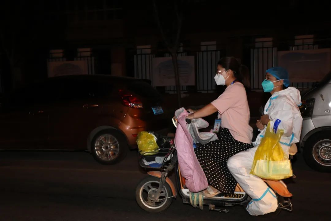 这样的凌晨,也正是任丹近期工作的常态。此次疫情发生以来,26岁的任丹,一直奋战在核酸检测、密接转运的防疫一线,用她瘦弱的身躯,同其他“大白们”一起,为我们前行的路保驾护航。