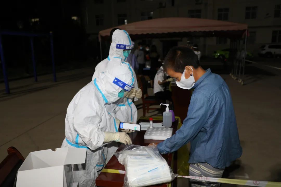 凌晨五点前,任丹准时到达白杨小区,快速、有序、高效地开始今天的核酸检测工作。