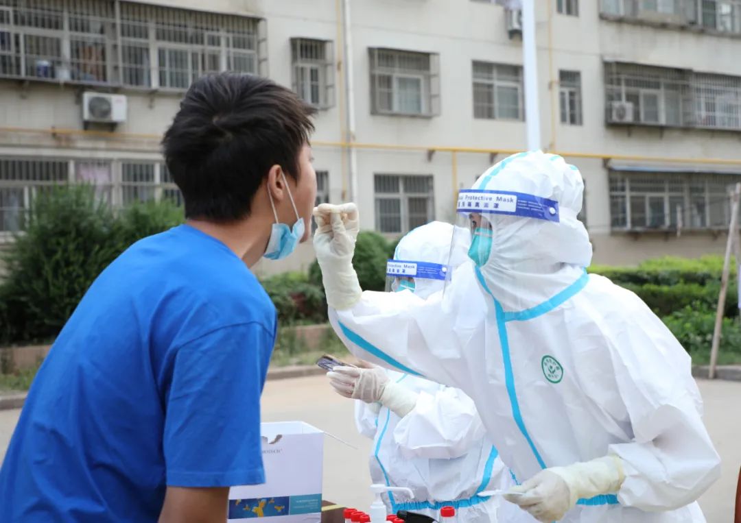 任丹甩着有些发麻的胳膊告诉记者:“这两天居民们都很配合,早早起来就排起了队,比起一开始连续做6个多小时,这已经轻松多了。”随后,她还前往行动不便的居民家中为其做核酸检测。