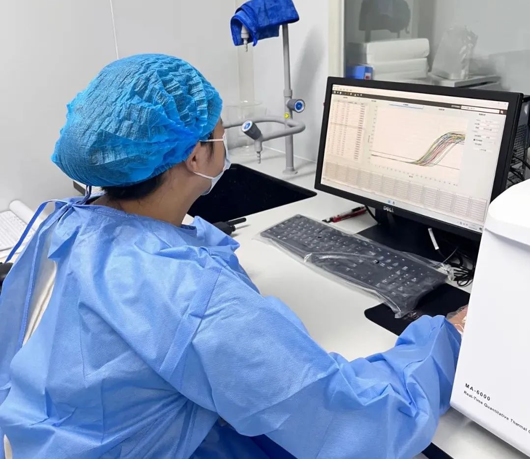 弯腰,手捏拭子直达咽狭处,准确、快速地擦拭,随后将拭子投入运送培养基,最后进行严格地手部消毒……一系列流程熟练高效、行云流水。
