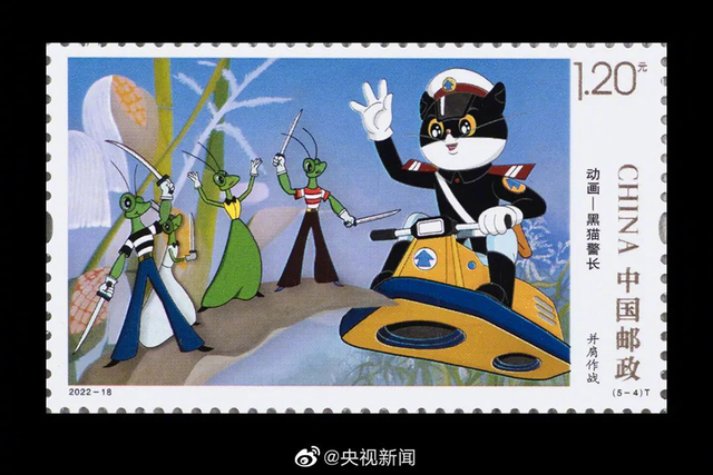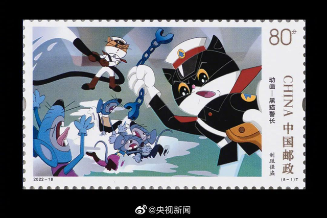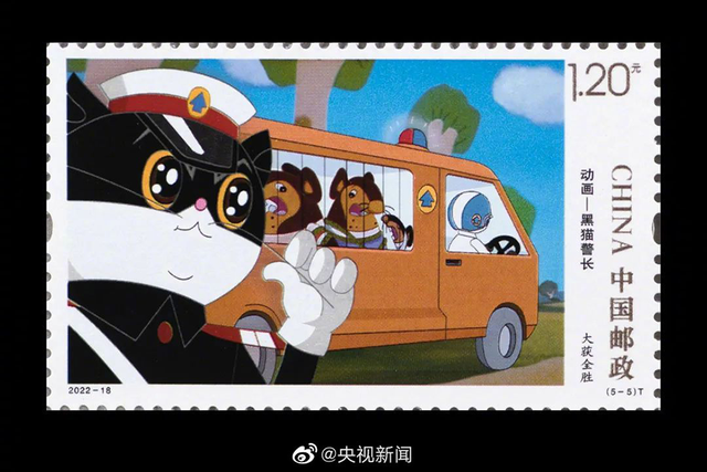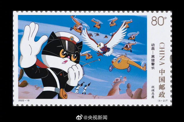 中国邮政定于9月3日发行《动画——黑猫警长》特种邮票。邮票一套5枚,计划发行630万套,全套邮票面值5.20元。这套邮票表现了动画中制服强盗、捉捕恶鹰、保卫家园、并肩作战、大获全胜的故事情节。你最喜欢哪一款?