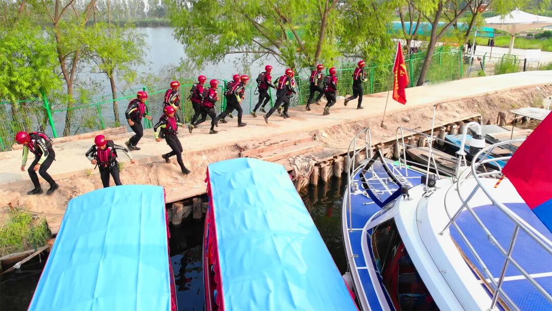 聚焦使命锻劲旅,协同共建书新篇。进驻后,队伍第一时间前往新盖房水利枢纽和白洋淀周边水系进行战场勘察,并依托防汛指挥图、水系分布图、交通图、河北省七条流域防洪工程位置图构建战场图库,及时与新区应急、水利、气象等部门加强互联互通,建立“联席会议、情况通报、应急响应、联合演练”等一系列制度机制,定期交流工作,实现战场共建、资源共享、任务共赢。
