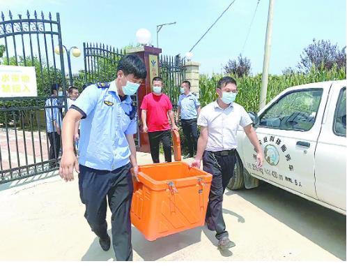 市南水北调工程运行保障中心人员和温县农业农村局人员将娃娃鱼送往焦作救护。