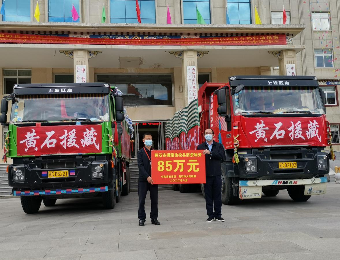 西藏发生疫情以来,一直牵动着黄石全市人民的心,黄石市市委、市政府高度关注,全力支持曲松县抗疫。8月15日,市委研究支援曲松抗疫有关事项,明确我市将一如既往担当对口支援重任,义不容辞加大支持力度,帮助曲松县打赢疫情防控阻击战。黄石市先后两批次援助393箱抗疫应急物资,累计价值161万元。
