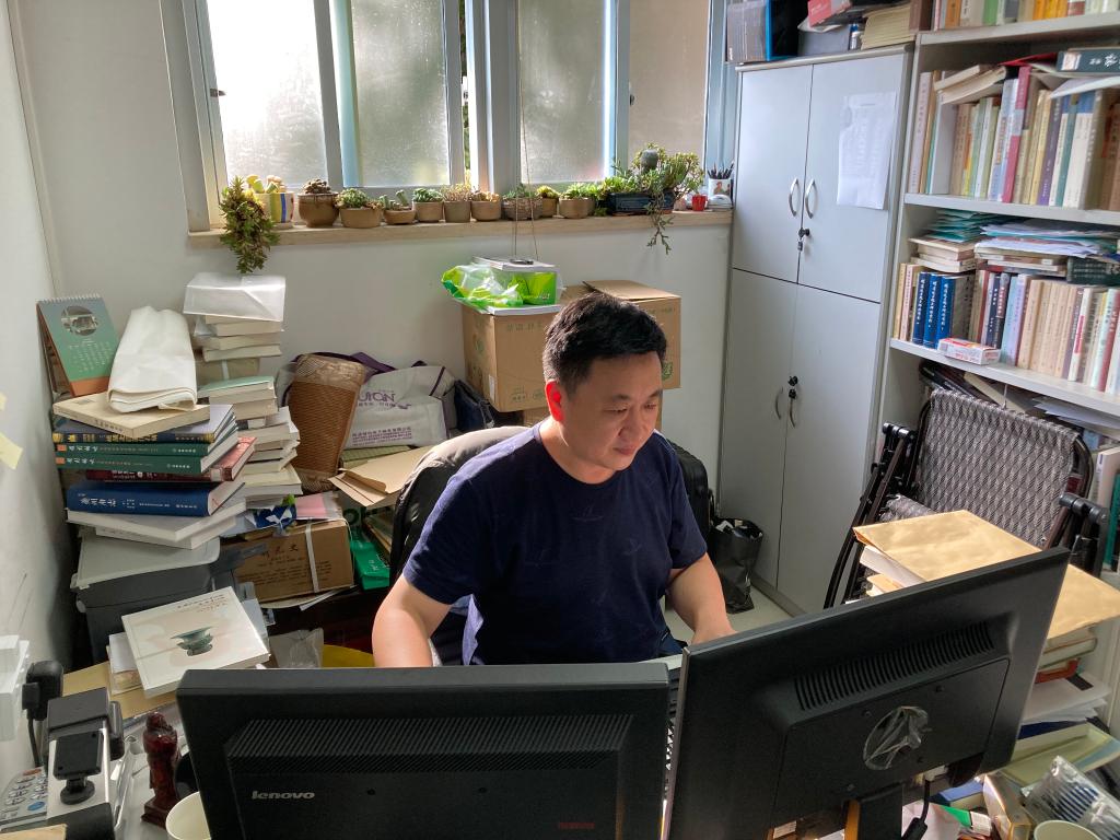 一间斗室、三尺书桌,到处都是书和资料……8月的重庆骄阳似火,办公室内逼仄且有些许闷热,重庆中国三峡博物馆的研究员刘兴亮一如既往安静地伏案工作着。