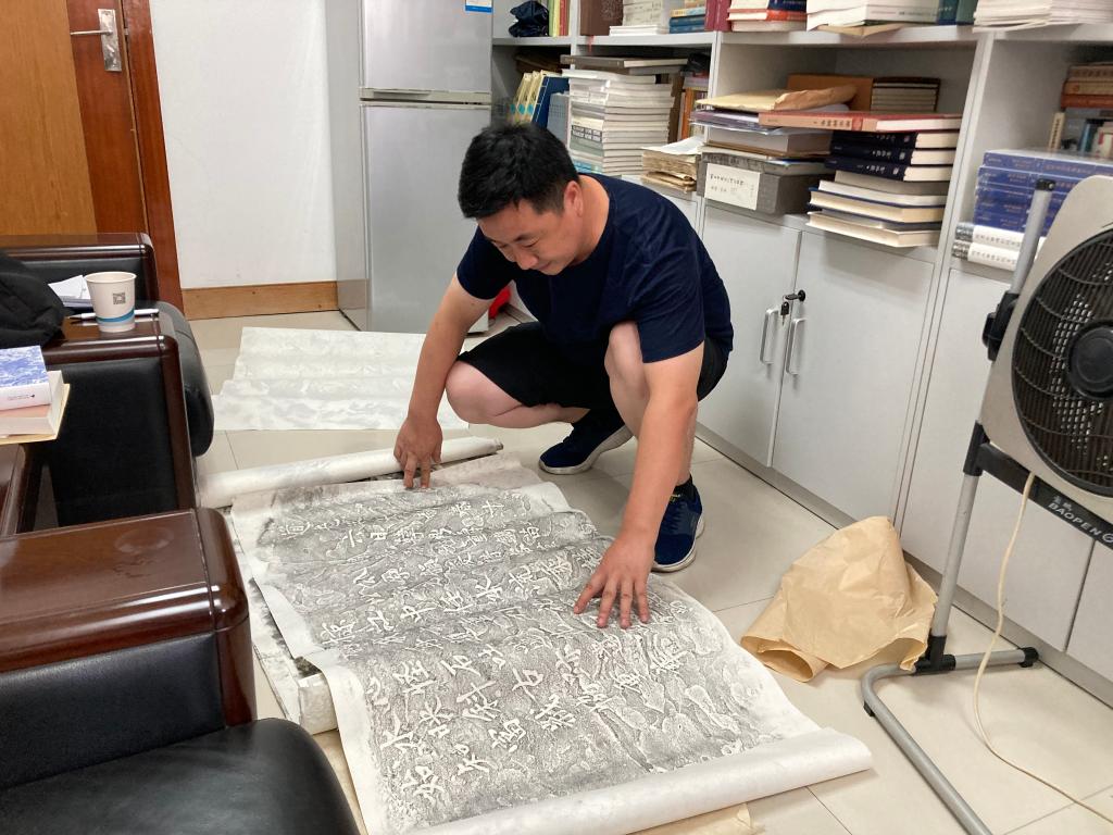 刘兴亮正在整理前期所拓制的题刻。新华社记者 刘恩黎摄