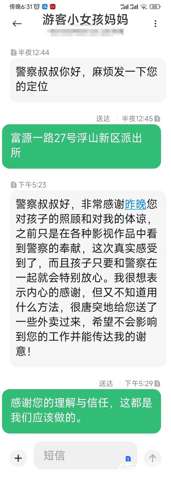 8月15日下午17时许,王晓彬在单位突然收到两大包外卖食品,他很诧异,不知道是谁送来,这时,一条短信传来,王晓彬看后笑了,而民警们也纷纷传阅,看后大家都欣慰的笑了,都说:“这顿饭,我们吃!”