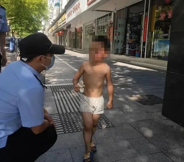 值班民警火速出警现场,在黄山东路地质队门口找到这名仅穿着短裤的幼童。民警立即上前询问,由于男孩年龄太小表述不清,民警问了20分钟仍没未得到任何信息。随后,民警将男孩带回所里,为男孩穿上自己的球衣。民警一边通过微信将男孩走失的消息发到朋友圈,一边继续与男孩耐心沟通,全力帮助寻找家人。通过耐心交流,男孩说出了自己的名字,民警通过工作找到其家人信息。当天17时许,男孩姑姑将其领回。